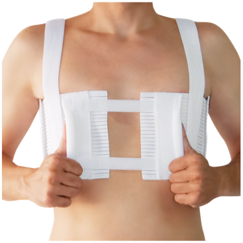 Στερνική ζώνη μετά από επέμβαση ανοιχτής καρδιάς. Το αυτοκόλλητο κλείσιμο με velcro επιτυγχάνει εύκολη και άνετη εφαρμογή. Διασφαλίζει την απόλυτη σταθεροποίηση και προστασία της τομής στο στέρνο.