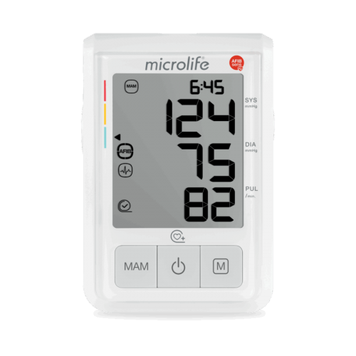 Ψηφιακό Πιεσόμετρο Μπράτσου με τεχνολογίες AFIBsens για ανίχνευση κολπικής μαρμαρυγής & MAM για τριπλή μέτρηση και εμφάνιση του μέσου όρου.